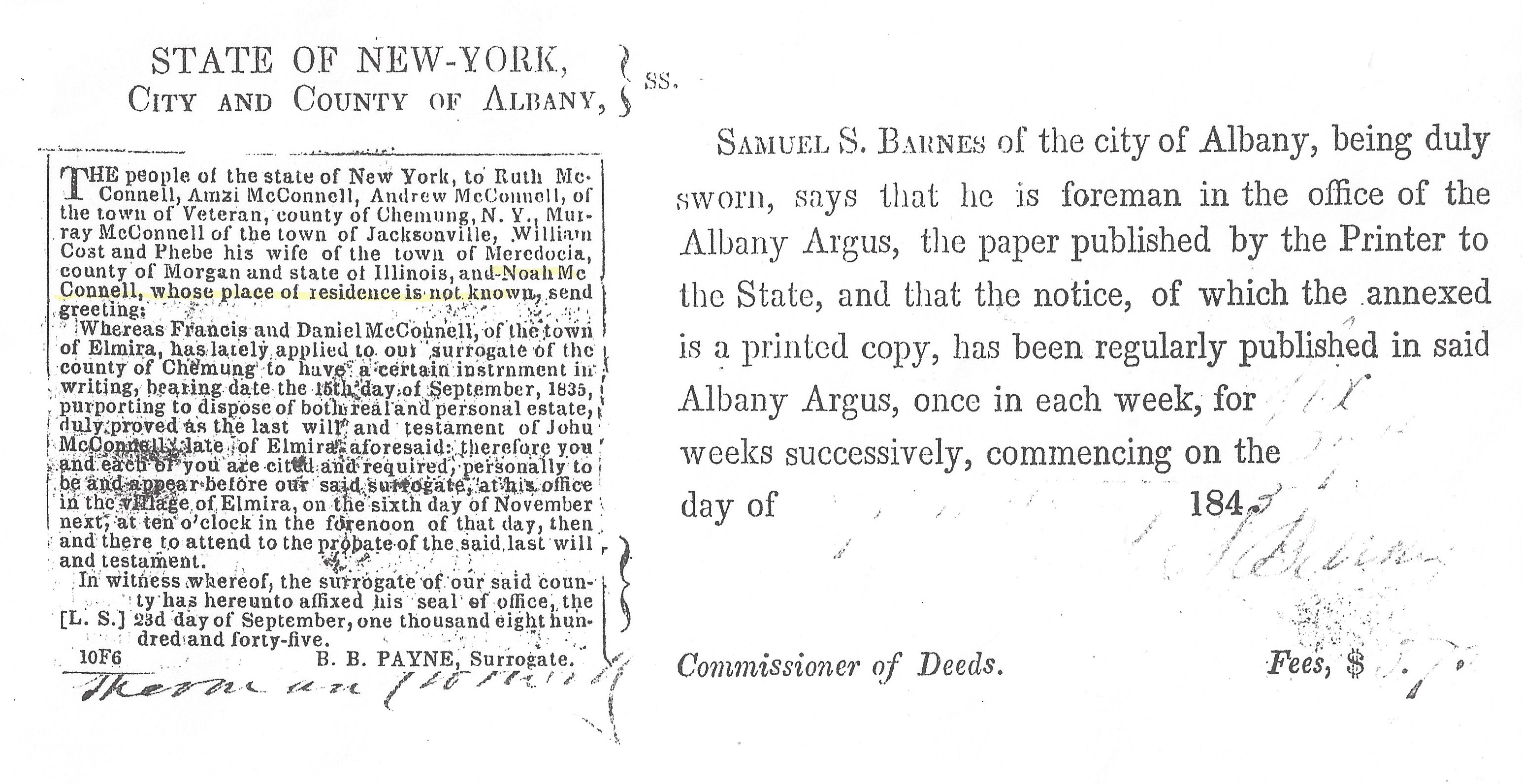 in the Albany, New York Argus. At the time of this announcement mention is made of Noah "whose place of