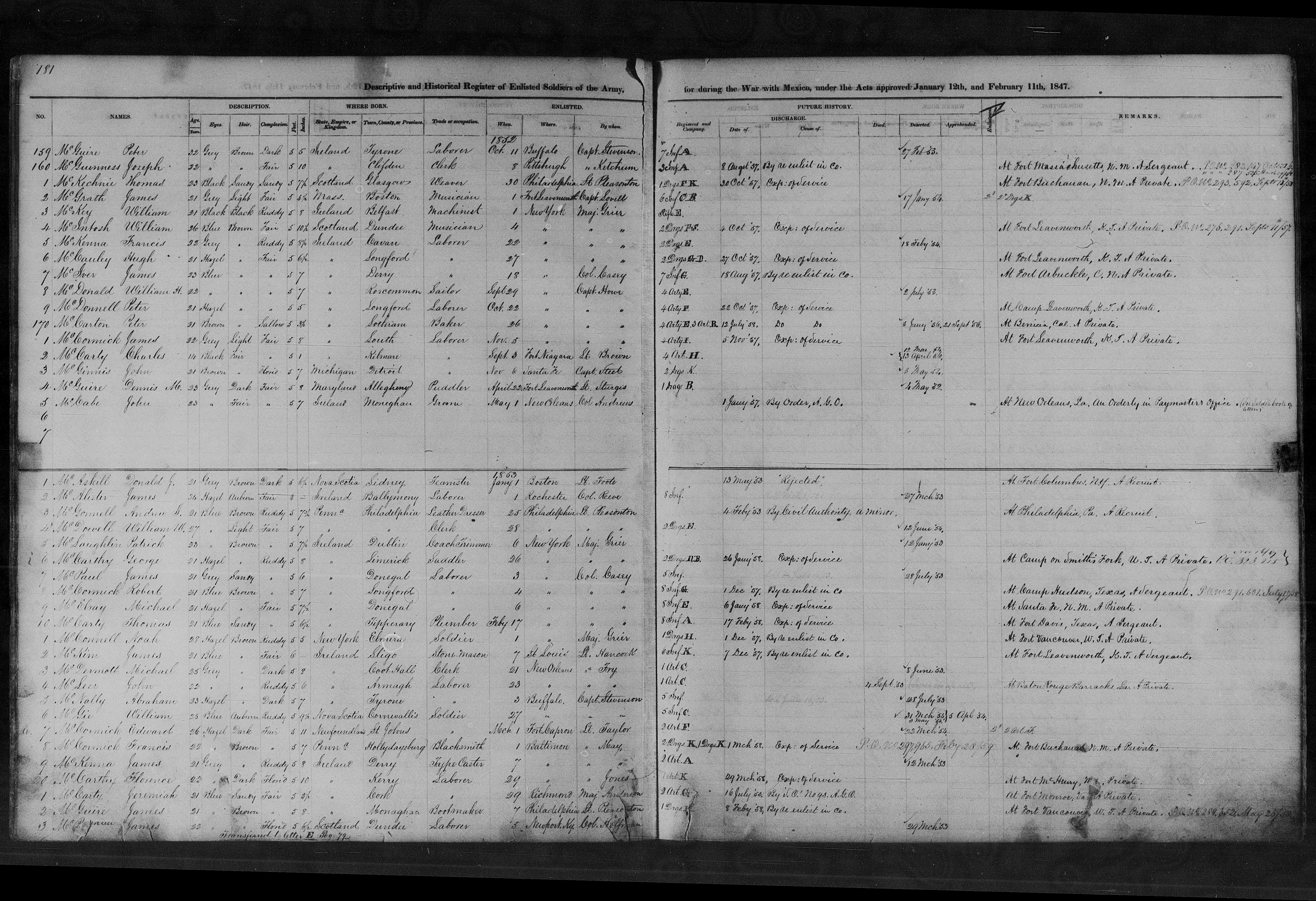 re-enlisted in the Army in Colorado February 1st,1853. Noah was discharged from the Army at Ft.